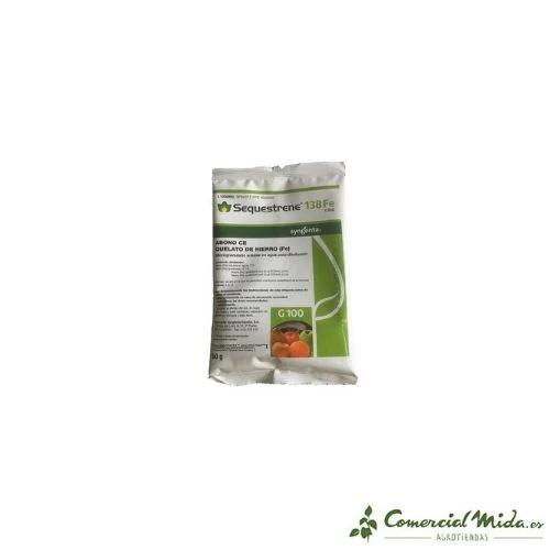 Sequestrene de Syngenta es un quelato de alta calidad indicado para la corrección de la amarillez denominada como clorosis férrica. Su fórmula es fácilmente soluble en agua, gracias a su diseño en forma de gránulos finos que evitan la formación de polvo. Este producto tiene una elevada concentración de hierro asimilable compuesto por un 7% de hierro soluble, un 6,2% de hierro quelatado y otros agentes con las mismas propiedades. Una de las funciones principales del hierro es la reducción de nitratos y sulfatos, ya que es un gran constituyente de pigmentos y encimas, interviniendo en la captación y transformación de la energía tanto en la fotosíntesis como en la respiración y, aunque no forme parte de la clorofila, es necesario para su síntesis (pigmentación verde).