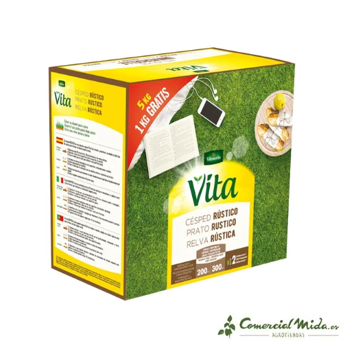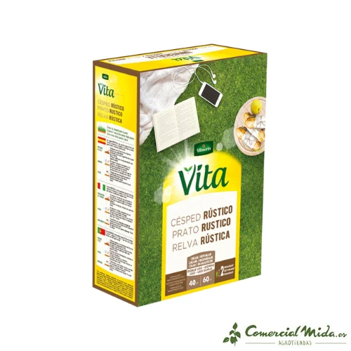 El césped rústico Vilmorin ha cambiado de nombre y ahora se llama césped rústico Vita, misma composición y empaquetado, distinto nombre. Es un producto para todos los jardines.
