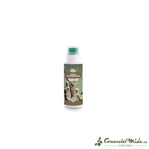 Pasta cicatrizante para tratar árboles frutales y arbustos que han sufrido algún corte, herida o injerto que las pueda debilitar. Con efecto cicatrizante.